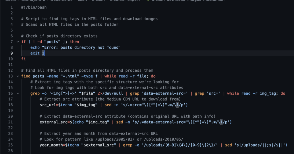 This was absolutely perfect. To sum it up we now have the images from Medium CDN’s and also the path where have to place them. It was now time to bust out Cursor and write that shell script to automatically scan for these tags, get the correct attributes, download the images and place them in the correct folder